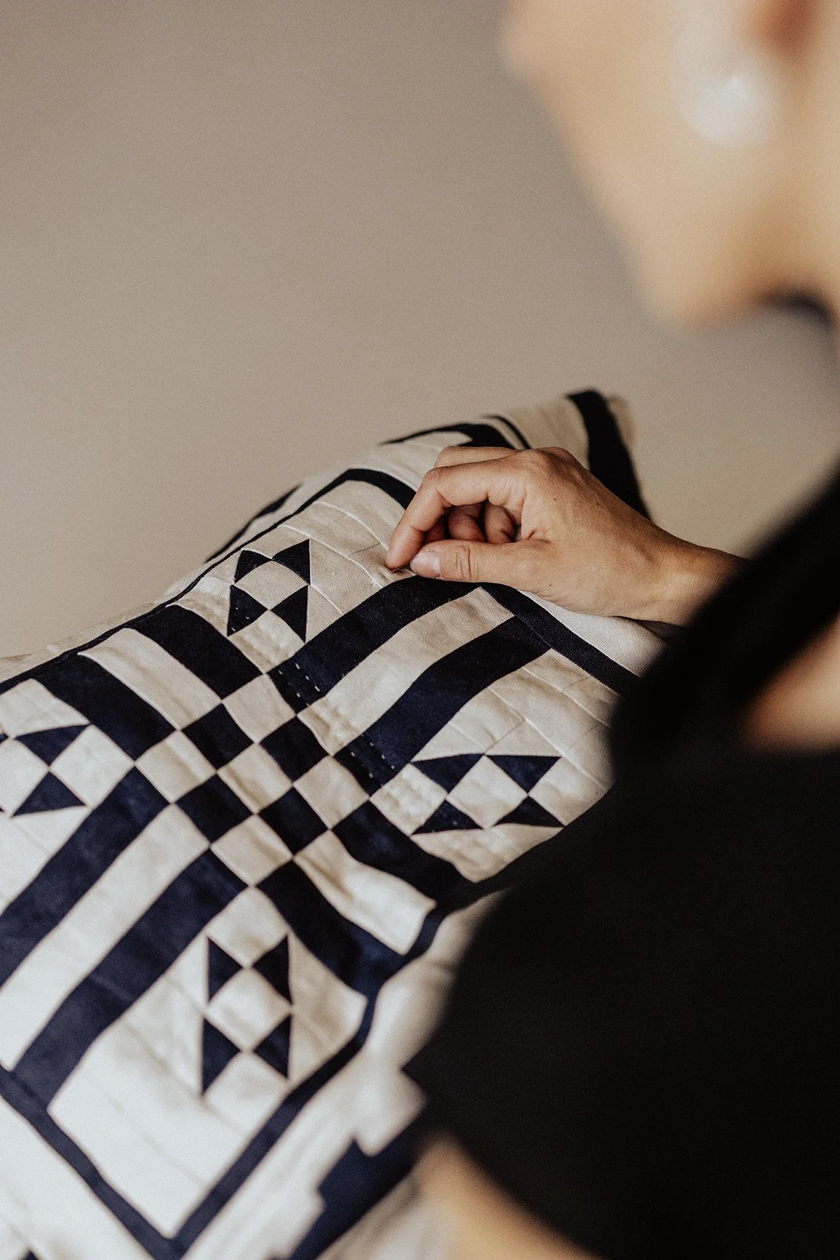 Quilt Top Colour: Dark navy and Ivory
